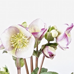 Helleborus niger, Helleborus orientalis en hybride cultivars op dit moment voorradig op de kwekerij.